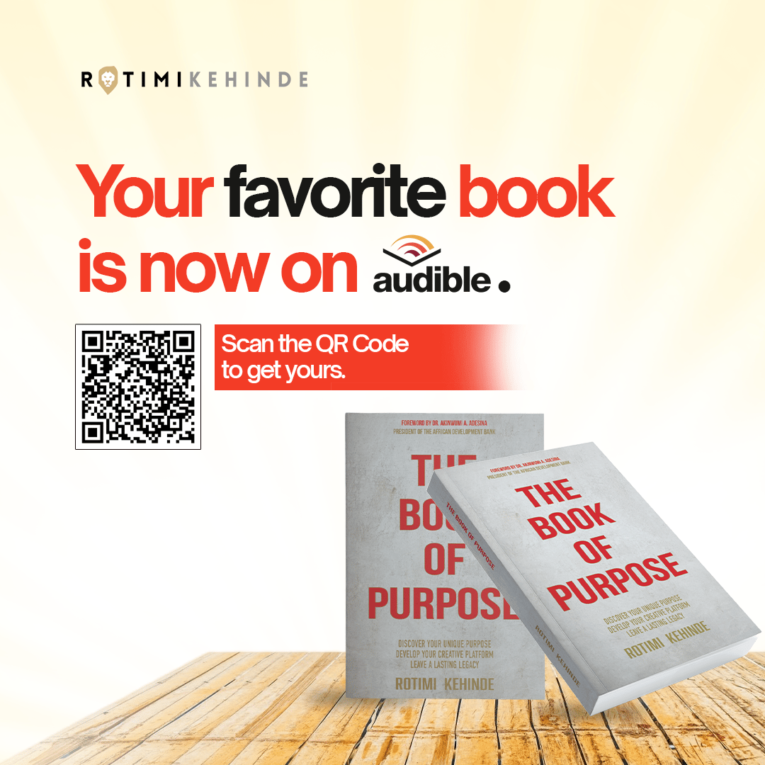 When I wrote The Book Of Purpose, my desire was to ensure that everyone who had the opportunity to lay their hands on this book saw it as a roadmap towards finding and fulfilling their purpose. To ensure that more people had access to this book, my team and I decided to put the book on an audio platform. A few months down the line, and The Book Of Purpose is now on Audible. Get your copy here.